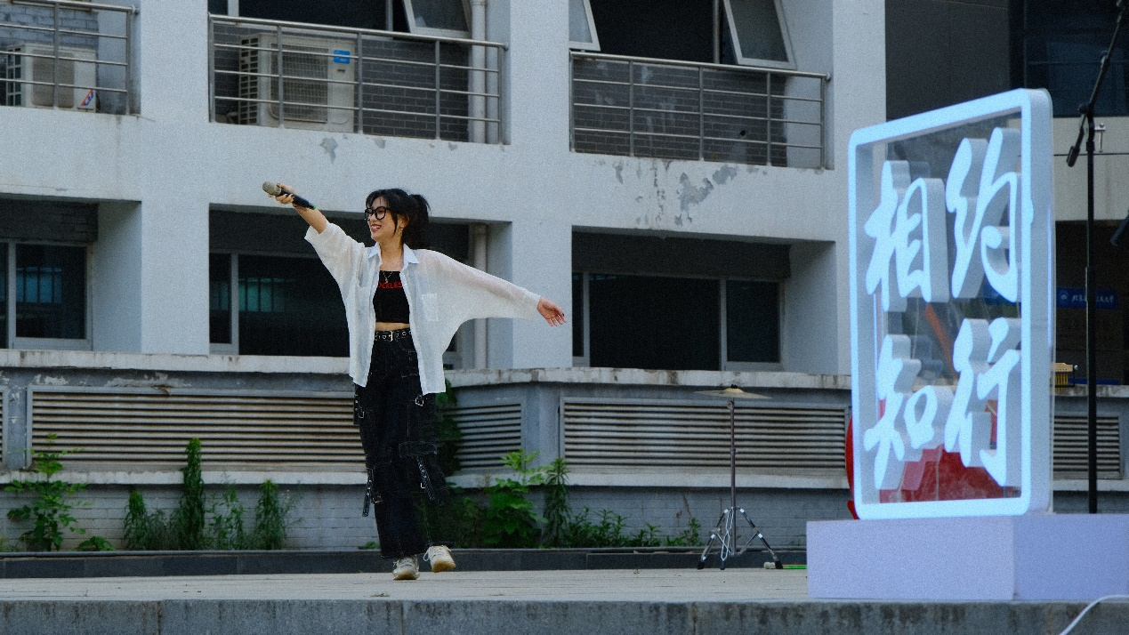 最后,袁竹韵同学用《起风了》将全场氛围带至最高潮。熟悉的曲调动人心弦,同学们不禁跟随音乐摇摆,一起歌唱。