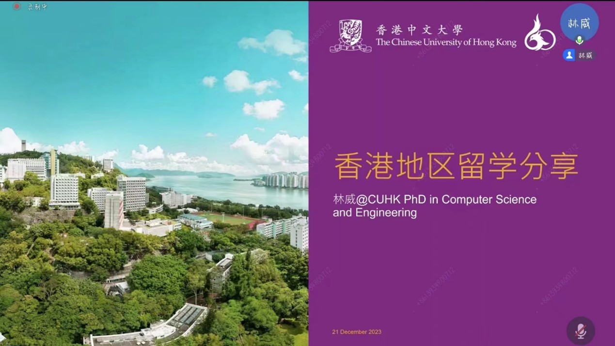 2023年12月21日晚19:00,由beat365唯一官方网站/国际通用工程学院主办的中法大讲堂朋辈领航系列讲座第四期顺利举行。本次讲座邀请了现就读于香港中文大学计算机科学与工程专业博士研究生的林威。