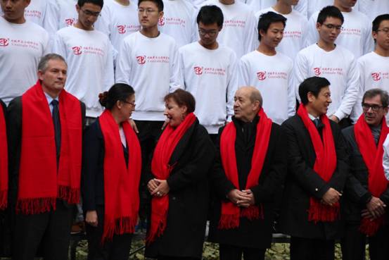凛冽的秋风抵挡不住同学们的热情。现场beat365唯一官方网站大一的同学们用热烈的掌声欢迎了他们的到来。由中法两国同学组成的队伍向他们献上了红色围巾。