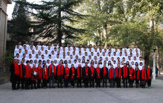 每位同学也都简单的用法语和他们进行了交流。虽然她们还只是刚刚接触法语两个月的初学者,虽然并不能完美的表达自己的感情,但就是一句简单的“bienvenue à pékin”,深深地体现了中法学子真挚的欢迎之情。而校长也热情的问来自法国的同学,能不能听的懂中文,在这里学习的怎么样。最后,全体大一同学和来宾们进行了合影。