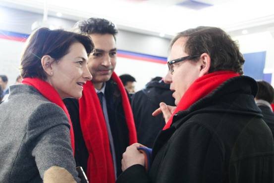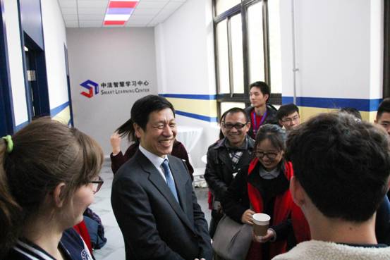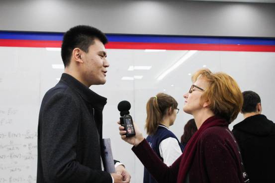 接下来,外长同各大法企领导、中法学生以及来自法国的助教们零距离进行了沟通。现场来自不同国家的人们也互相之间谈论着这次的“企业开放日”、中法之间的合作办学,以及中法企业之间的合作共赢。大三学生张路杨Charly还接受了法国国际广播电台RFI记者的采访。记者向他提出了“对于马克龙先生当选法国总统有什么看法?”“以后是否会考虑在法国工作生活?”等问题,Charly一一进行了具体而又流利的回答。
