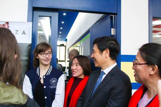 接着,勒德里昂先生和徐惠彬校长与参会企业交流,参观中小企业展区,充分了解校企合作情况;询问了中外学生的学习生活,勉励学子们早日成才。
