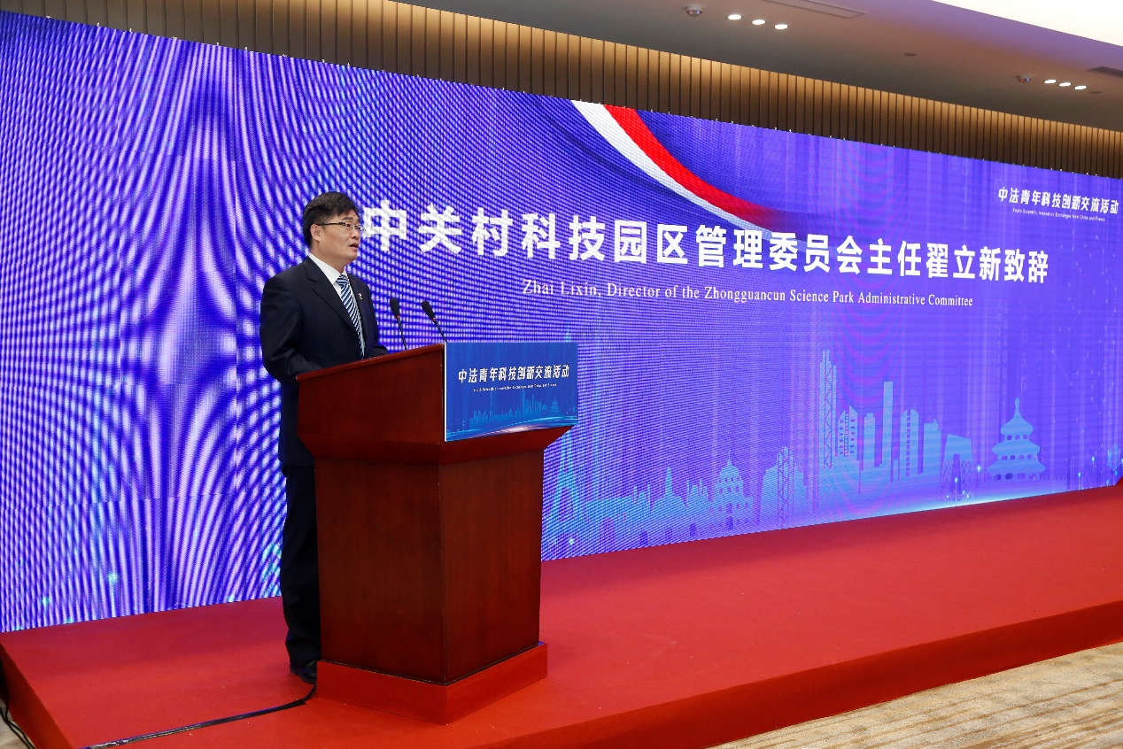 在开幕式上,中关村科技园区管理委员会翟立新主任在中关村管委会主任翟立新观看了中法两国中学生的参赛项目成果展示并致辞,他指出青少年是人才培养的黄金期,对一个国家未来的科学技术进步意义重大,中关村国家自主创新示范区作为北京建设全国科技创新的主阵地,热忱欢迎来自世界各国的青年人才投身到创新创业的事业中来,中关村管委会将为国际青少年的成长搭建舞台,并做好服务保障工作。