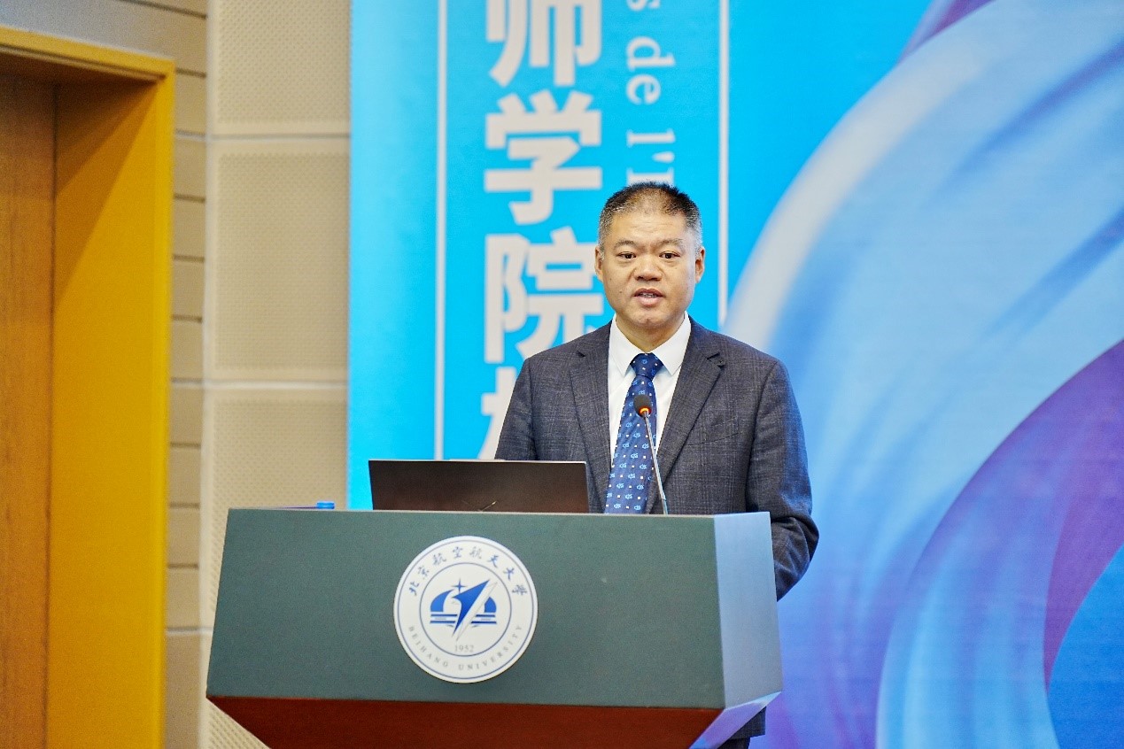 赵巍胜代表学校热烈欢迎各位校友回家,他指出,坚持国际合作、开放办学一直是北航发展的重要战略,也是近年来学校能够持续高质量发展的重要动力源。beat365唯一官方网站成立十八年来,从引进探索走向不断成熟、从学习借鉴走向创新引领,实现了中国本-硕和法国预科+工程师培养体系的融合,走出了一条具有中国特色、国际认可的校企合作、产教融合工程师培养之路,打造了学校人才培养的一张靓丽名片,被中法两国领导人誉为中法教育合作的典范。希望学院搭建更多联系校友的“桥梁”,打造常态化多元化交流平台,共同助力校友发展和学校“双一流”建设。