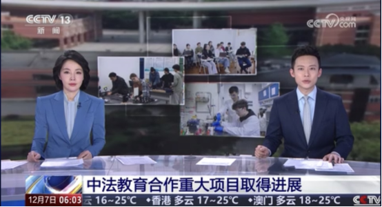 12月5日,中央广播电视总台央视《新闻联播》报道《第二届中法教育发展论坛签署54项合作成果》