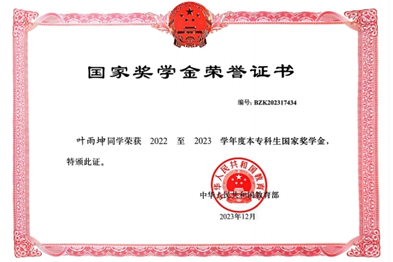 “通用工程师的‘通’是打通关联、抓住共性。”预科阶段的数理基础成为叶雨坤学术道路的基石,三年来他学业成绩稳居年级前三,连续三年斩获国家奖学金,先后获评校优秀生、校三好学生,2025年获评北京市“三好学生”。