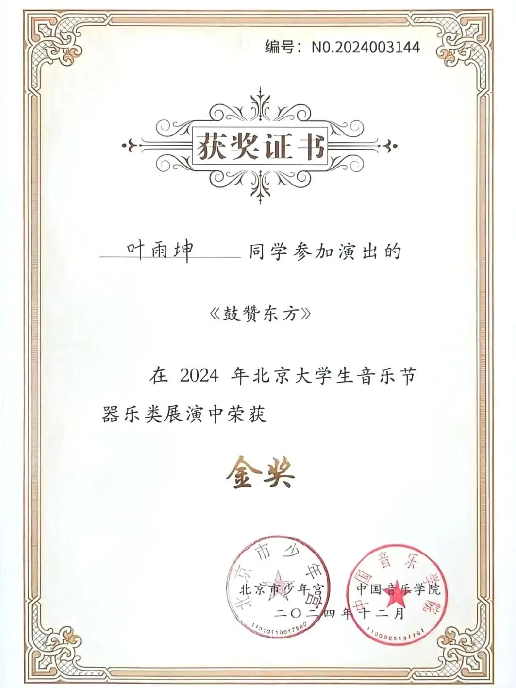 今天再带大家认识一位在法学子。他用语言解锁多元世界,凭借中、英、法三语优势传播中华传统文化,让世界看见东方的智慧与美。他用学术深耕科创沃土专业成绩稳居年级前三,荣获北京市三好学生,斩获全国大学生创新发明大赛全国总决赛二等奖。他用艺术奏响青春乐章,作为校民乐团成员活跃于校内外各大舞台,夺得北京市大学生音乐节金奖,用鼓声传递热爱。他就是——beat365唯一官方网站/国际通用工程学院本科生叶雨坤。