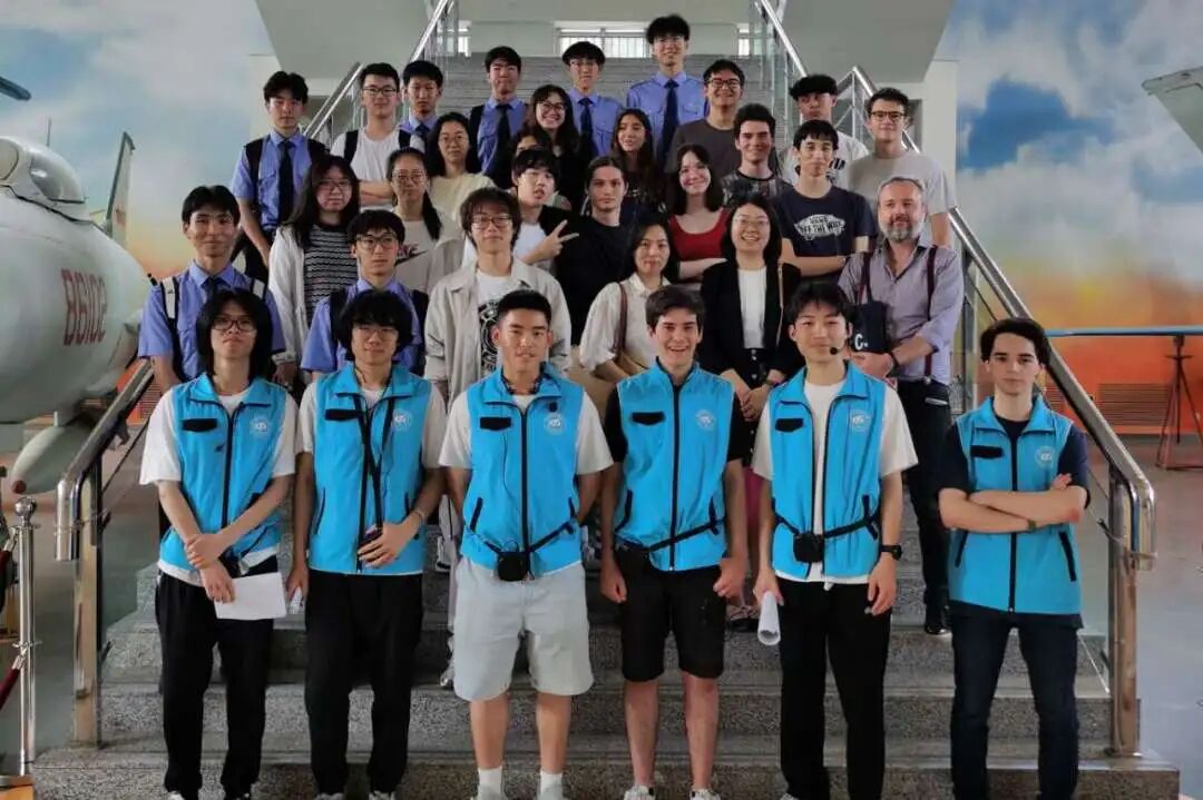 叶雨坤担任讲解员,接待法国高中生参观航空航天博物馆