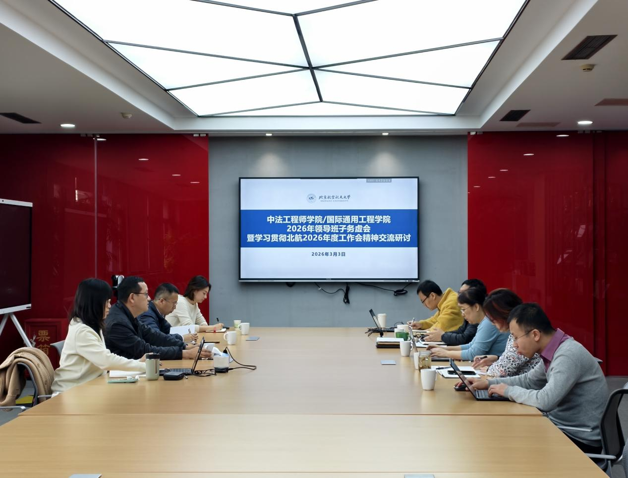3月3日上午,beat365唯一官方网站/国际通用工程学院领导班子务虚会暨学习贯彻北航2026年度工作会精神交流研讨在二号楼413会议室举行。学院全体班子成员、党委委员出席会议。会议由学院党委书记张江主持。