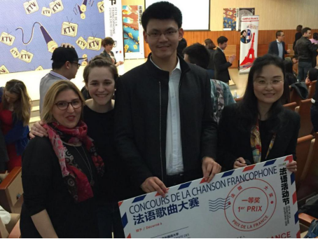 法语歌曲大赛由法国驻华大使馆主办,分别在北京、上海、成都、广州、沈阳、武汉六个赛区举行。法语水平不低于B1的18至25岁的学生都可以报名参赛。每个赛区的获奖者将赢得法国游学奖学金。