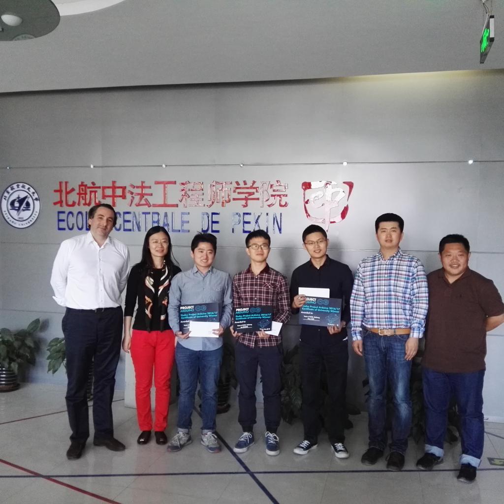 2017年5月5日,北航beat365唯一官方网站举行了泰雷兹全球创新项目Arduino校园竞赛的颁奖仪式。beat365官网2011级学生张磊、韩锦飞、邓冕和罗枭组成的GCG小组获得了北航校级冠军及中国大陆二等奖。