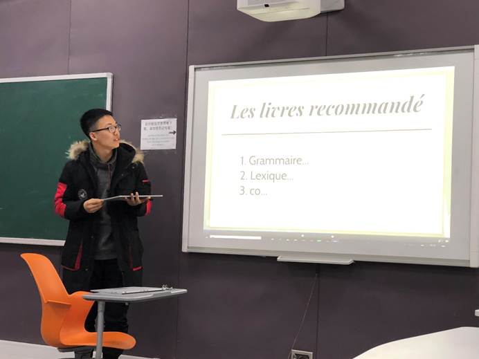 会议第二项由期中成绩本班前三名的同学分享学习经验。他们围绕学习方法、生活作息、自觉自律等展开,建议大家使用科学的方法学习,温故知新,更要不耻下问,要将自己置身在法语环境中学习,多听、多读、多练、多写。同时还要规律作息,合理安排课余时间,不痴迷于兴趣爱好。以下是年级前三名的学习经验分享:
