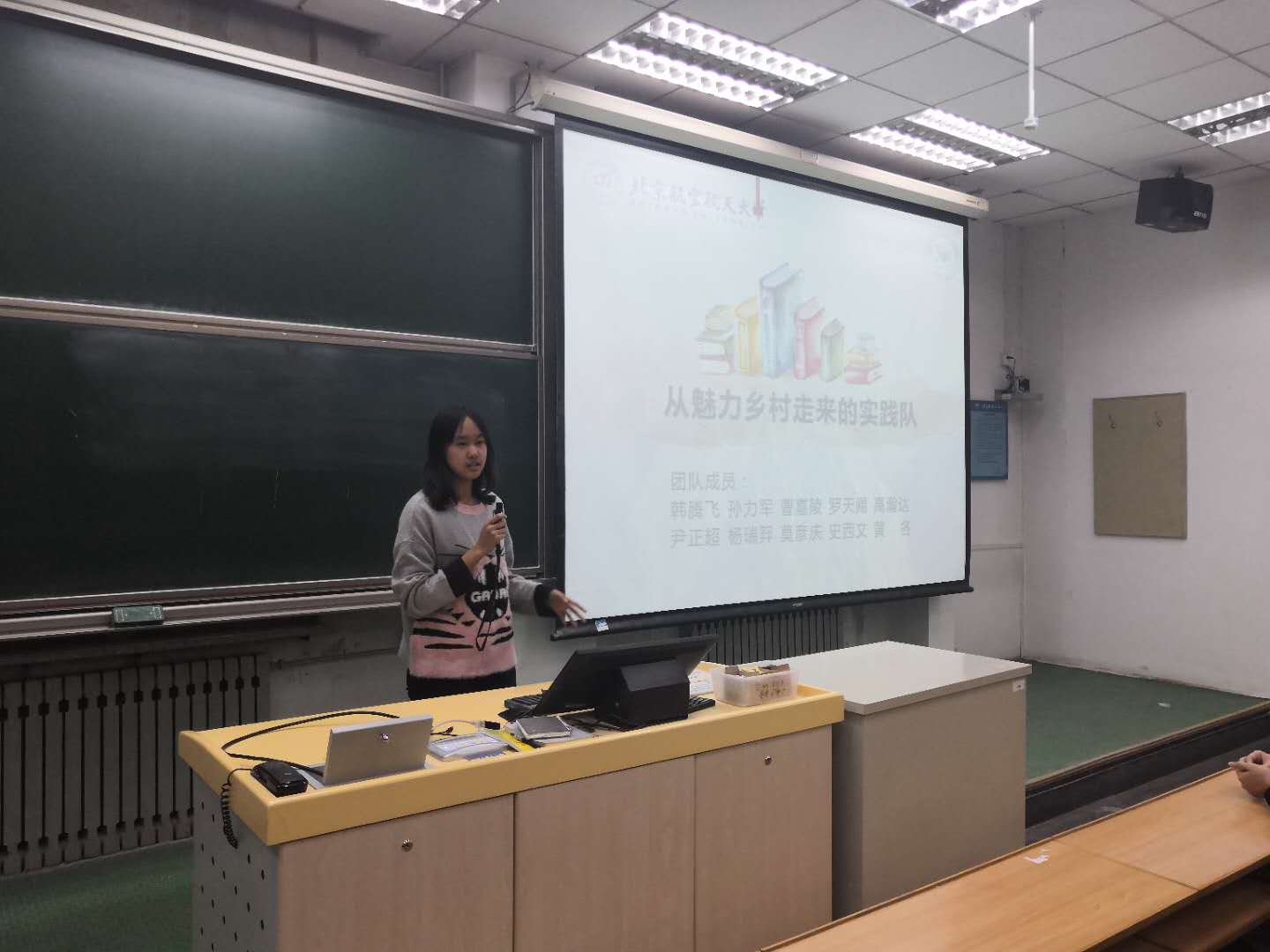 在了解了支教实践后,2018年暑期社会实践三等奖获奖队伍,航轨实践队队长,中法2017级本科生罗宸晟结合社会实践问卷调查、数据分析的方式方法进行了详尽的阐述。通过自己的实践体验,向同学们宣讲了对社会实践意义的见解。并将同学们介绍了航轨实践队过去、现在、未来的展望和规划。