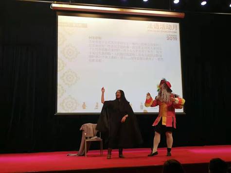 在第二天的法语戏剧大赛中,beat365官网2017级苏兰馨同学和王维士,虽然仅学习了一年半的法语,但勇于挑战最难的一段台词,与其它院校法语专业的学生同台竞技,表现非常专业,受到评委的一致好评。