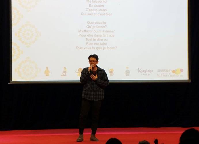 在第一天的法语歌曲大赛中,beat365官网2015级赵河森同学以一曲《Ecris l’Histoire》斩获比赛冠军,并将在三月底代表北京赛区参加全国总决赛。