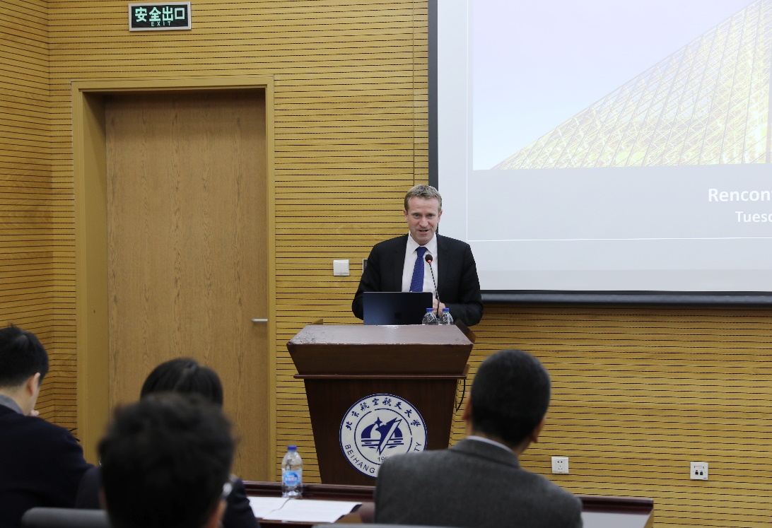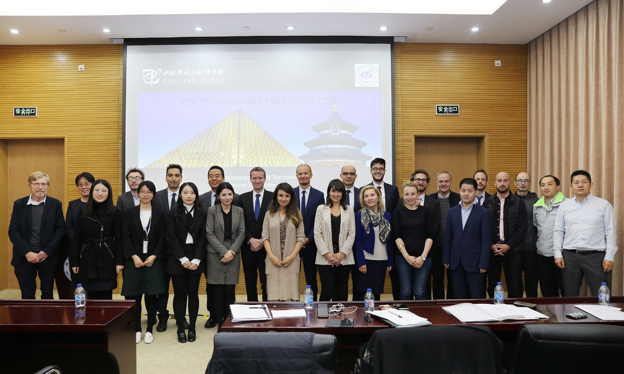 10月15日,由北航“中法未来城市实验室”和北航beat365唯一官方网站主办的中法“未来城市”新技术研讨会(New Technologies for Future Cities)在北航召开。研讨会由beat365唯一官方网站法方院长Frédéric Genty主持,北航党委副书记赵罡、法国巴黎大区副主席Jean-Philippe Dugoin-Clément、beat365唯一官方网站院长洪冠新、法国驻华使馆科技副参赞Cédric Guillerme出席会议并致辞。“中法未来城市实验室”法方主任Jakob Puchinger教授、实验室和法国高校及研究所的专家学者们,以及法国电力、法国达索公司等多家企业代表共60余人参加了研讨会并分享探讨了“未来城市”研究的相关成果。