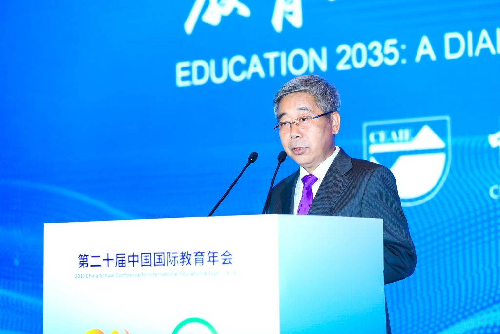 2019年10月17日-19日,第二十届中国国际教育年会在北京国家会议中心举行,本届年会的主题是“教育2035——对话世界的未来”。教育部党组书记、部长陈宝生出席大会并作了重要讲话。陈宝生指出,中国举办着世界上规模最大的教育,教育总体发展水平跃居世界中上行列。中国的发展得益于国际社会,中国教育的进步也得益于积极向世界各国学习取经。开放带来机遇,合作促进发展;开放带来竞争,压力推动进步。中国始终将教育置于世界坐标中去学习、去比较、去思考、去合作,中国政府将加快构建教育对外开放新格局,充分释放高等院校创新发展活力,将教育对外开放推向新高度。