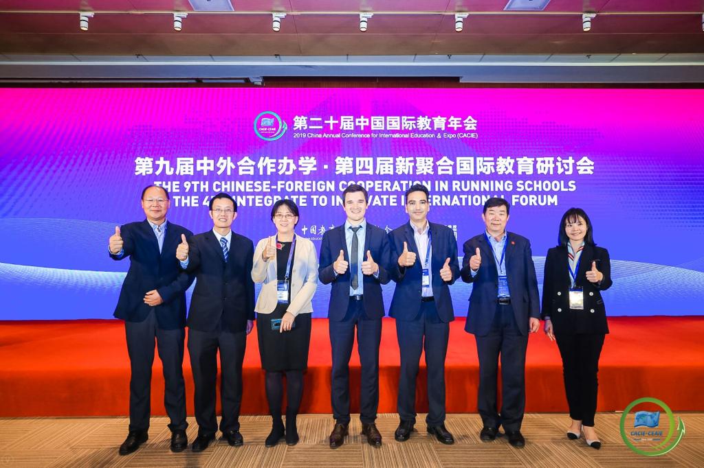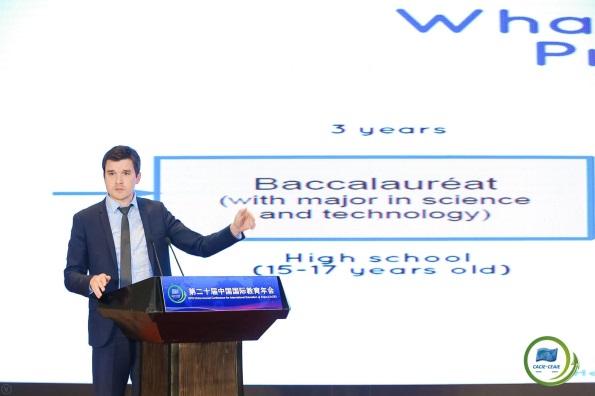 年会期间,召开了第九届中外合作办学研讨会,中法合作办学发展联盟在年会研讨会上正式揭牌成立。beat365唯一官方网站院长洪冠新教授受国际交流协会委托,代表联盟做了《中法合作办学2018年度报告》。法国Chaptal预科学校副校长Herve RIOU教授应邀做了《法国的STEM教育》报告。beat365唯一官方网站法方院长Frédéric GENTY教授、副院长徐平教授出席会议。
