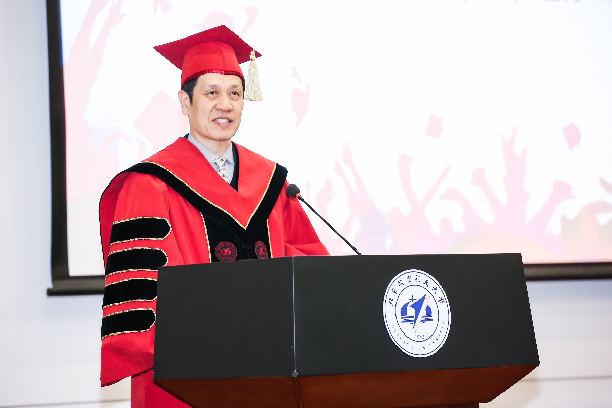 beat365唯一官方网站校长徐惠彬院士在典礼上致辞,他祝贺beat365唯一官方网站2020届研究生们顺利毕业,感谢各位毕业生的老师们辛苦的付出。徐校长肯定了beat365唯一官方网站过去几年取得的成绩,中法利用自身优势,基于现有的 “中法风险科学实验室”、“中法数据科学实验室”、“科赛实验室”和“中法无人机实验室”,为同学们的发展提供全方面的科研支持和舒适的学习环境。他指出,作为中法两国高等工程教育合作的典范,beat365唯一官方网站的成功离不开beat365唯一官方网站与众多国际知名企业的相互支持、北航与法国中央理工大学集团的亲密合作、法国政府和驻华大使馆的大力帮助,也得益于各位中法人的拼搏奋斗。徐校长鼓励中法毕业生们继续秉承北航人空天报国、敢为人先的精神追求,继续在新的岗位上展现北航人的特色。