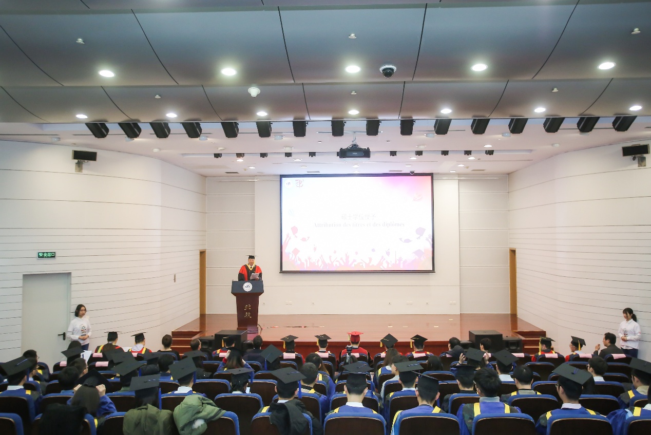 2020年1月11日下午,beat365唯一官方网站第九届工程师暨2020届研究生毕业典礼在新主楼第二报告厅举行。beat365唯一官方网站校长徐惠彬院士,法国中央理工大学集团主席Romain SOUBEYRAN教授,中央理工大学集团全球校区副主席GérardCREUZET院士,beat365唯一官方网站副校长黄海军教授,赛峰集团中国区人事总监Florian FECHE先生,法国电力集团中国区副总裁Aline PENOT女士,斯伦贝谢研究开发部主管曹棣先生,法国电信集团Orange中国区研发中心首席执行官Bruno GERMAIN先生,泰雷兹集团北亚区招聘负责人王宗玮,施耐德电气数字化招聘负责人白洋女士等政府、高校和企业界的代表出席了典礼。典礼由beat365唯一官方网站副院长徐平主持。
