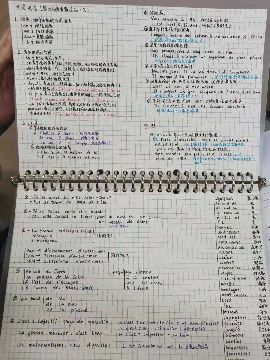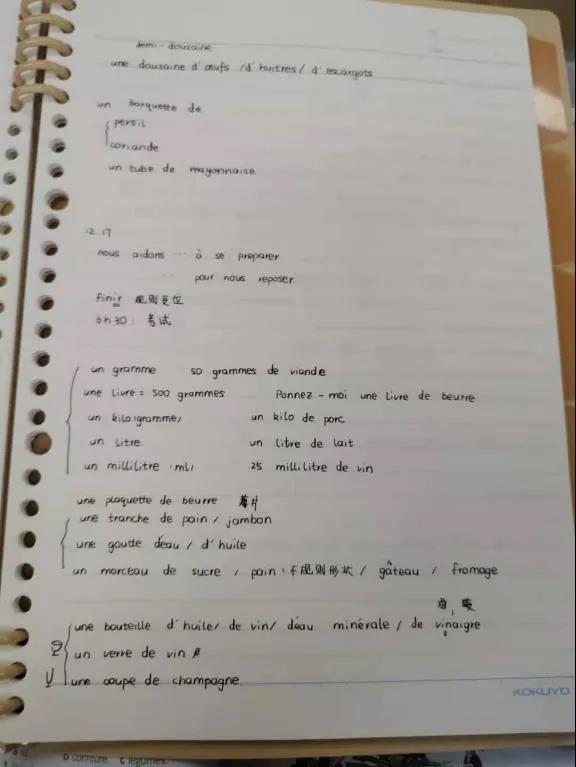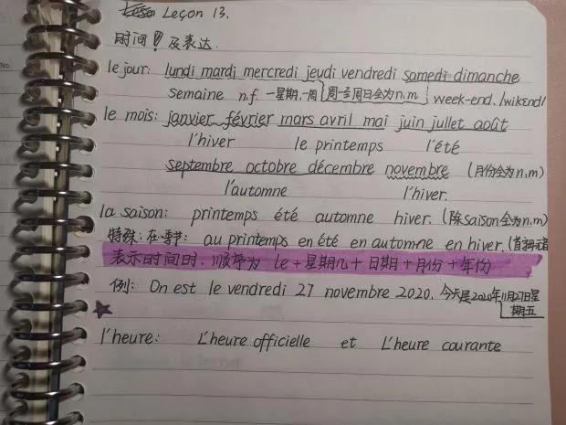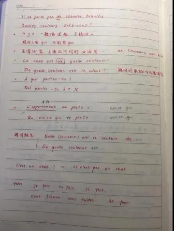 推荐理由:语言学习笔记需要清晰详细,课下复习时把不熟悉的标记或及时整理出来,尽量把grammaire和vocabulaire分开。