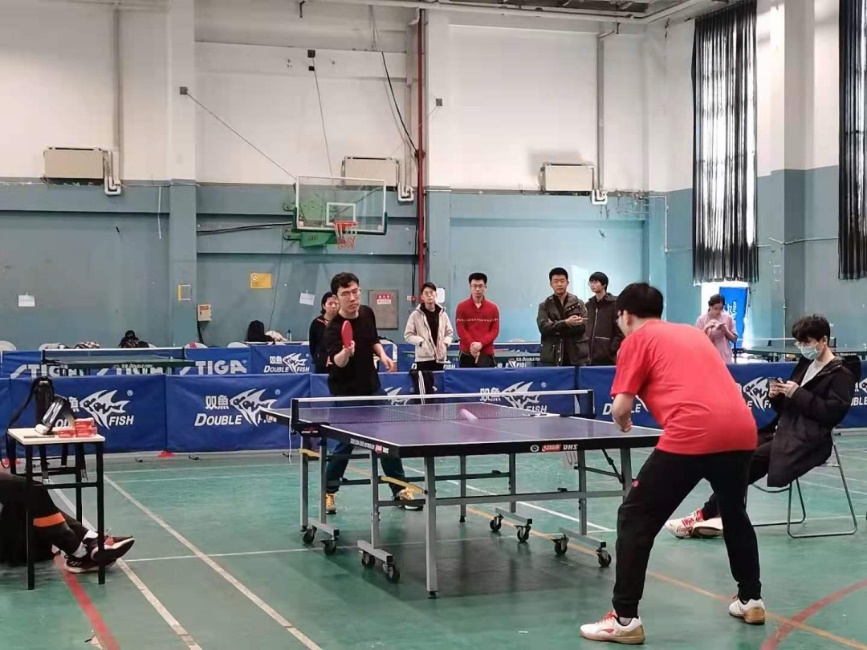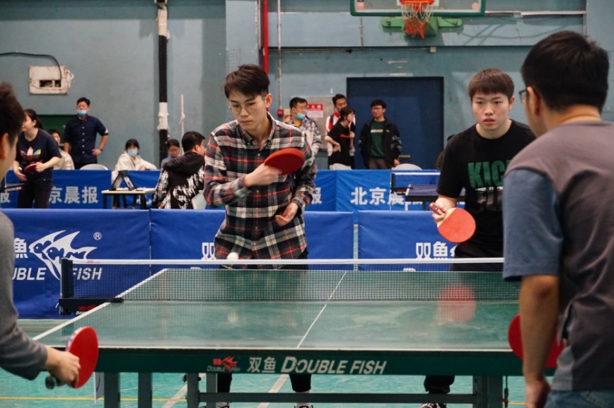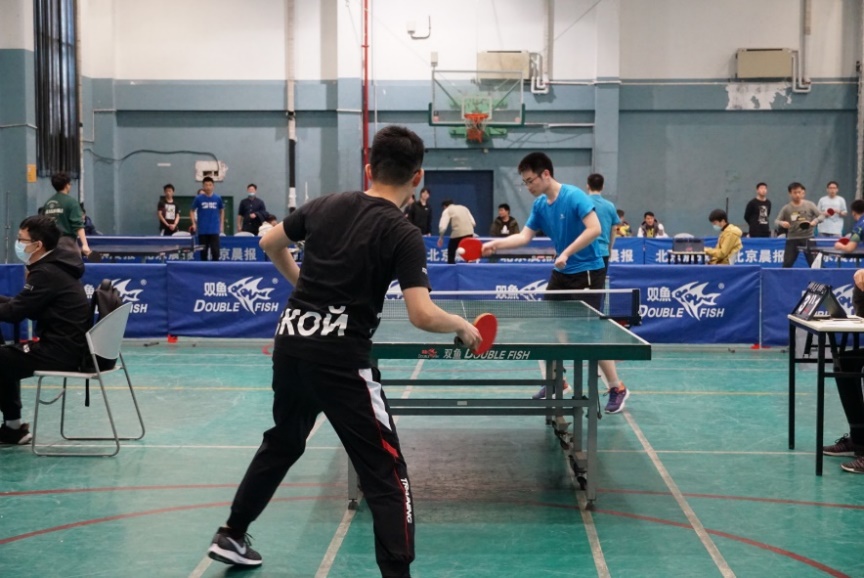 第一天的组内循环赛可谓是跌宕起伏。赛场上随处可见北航乒协、校队的高手,亦有平日球场练球时口碑相传的“大佬”,不少院系代表队的男女队员之中也是卧虎藏龙,若要跻身组内前两名,不可有过多失误。中法的参赛队员们在赛前摩拳擦掌、积极热身;比赛时按赛程顺序:男单、女单、男单、混双、男双,你方唱罢我登场,理性看待一球、一分的得失,综合技巧与心态,同对手争夺全局的胜利。第一天5场比赛下来,中法以胜场数并列、小分占优的条件排名B组第二,与组内种子选手双双晋级。