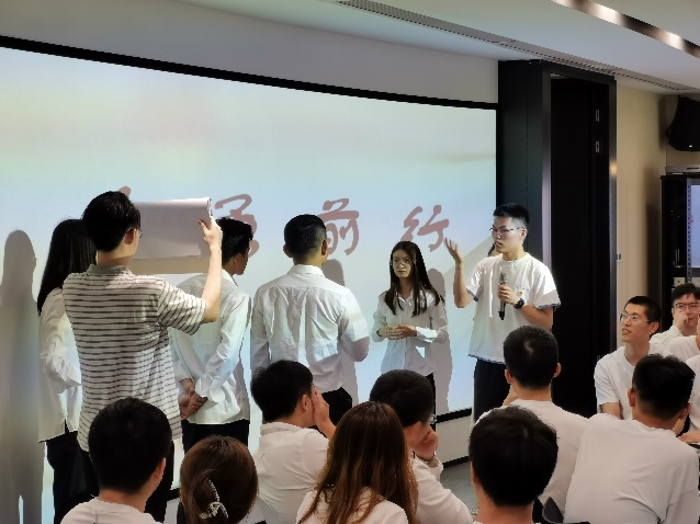 答题结束后,杭州研究院学生代表为大家带来了诗歌朗诵《有一首歌》。诗歌声落,熟悉的旋律响起,现场全体师生共同唱响《没有共产党就没有新中国》。