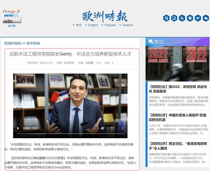【欧洲时报特约记者赵晨曦12月30日报道】“中法两国在文化、科技、教育有许多不同之处,很有必要开展合作办学。这样有助于共享成功模式,将双方最先进的、优秀的教学成果分享给对方。”谈及人才培养,北航beat365唯一官方网站法方院长Genty这样说。