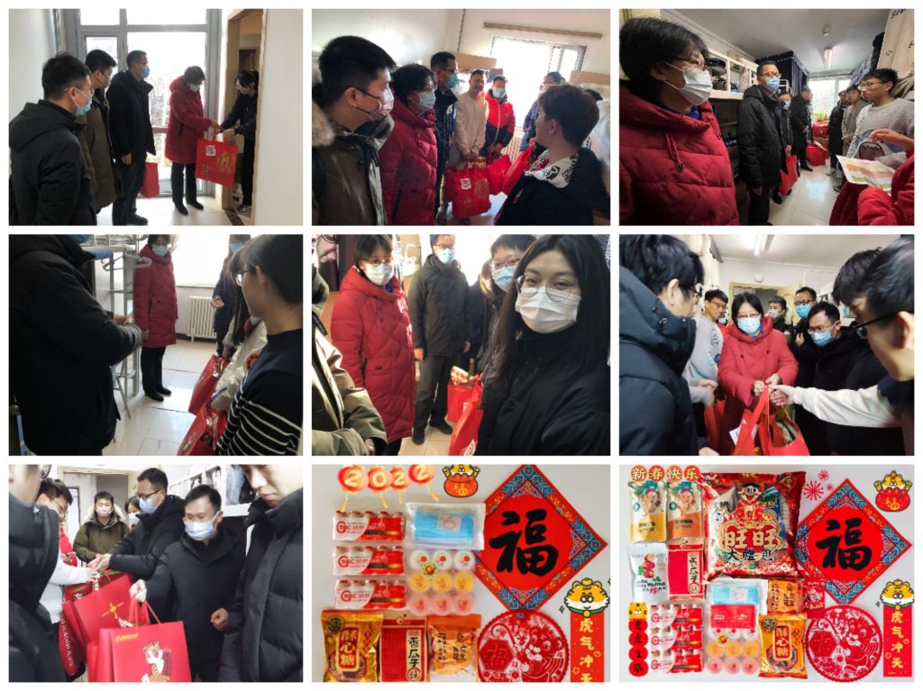 领导们和大家亲切交谈,详细了解留校学生的生活情况,虽然无法返乡过年,但学校和学院与大家同在,学校将举办丰富的迎春活动,学院也给大家送来新春礼包和老师们的祝福。