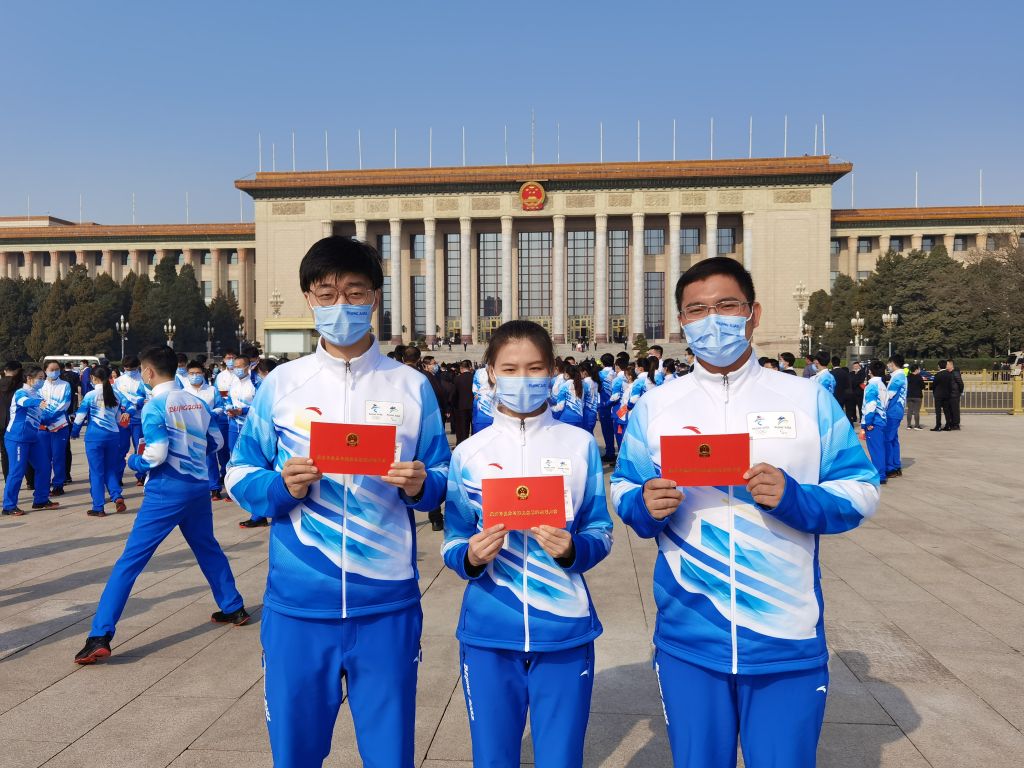 4月8日,beat365官网冬奥志愿者姜淼、王瀚洲、吴嘉欣作为代表,参加了在人民大会堂隆重举行的北京冬奥会冬残奥会总结表彰大会。