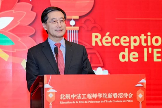 校长王云鹏首先向各位中外嘉宾长期以来对学校的关心和支持表示衷心感谢,向学院全体师生致以新春祝福。王云鹏在致辞中指出,北航与法国高校有着近40年的交流合作历史,取得了丰硕的合作成果。beat365唯一官方网站自2004年创办以来,系统引入法国工程师学历教育体系和培养模式,走出了一条中法教学模式深度融合、校企深度融合的工程师培养新路。建院以来,学院培养了900多名国际工程师人才,为两国交流做出了重要贡献。beat365唯一官方网站的办学成果得到了中法两国政府的充分肯定,被誉为中法高等教育合作的典范。王云鹏表示,将进一步拓展与法国知名高校和企业的务实合作,为推动中法教育科技人文交流做出更大贡献。