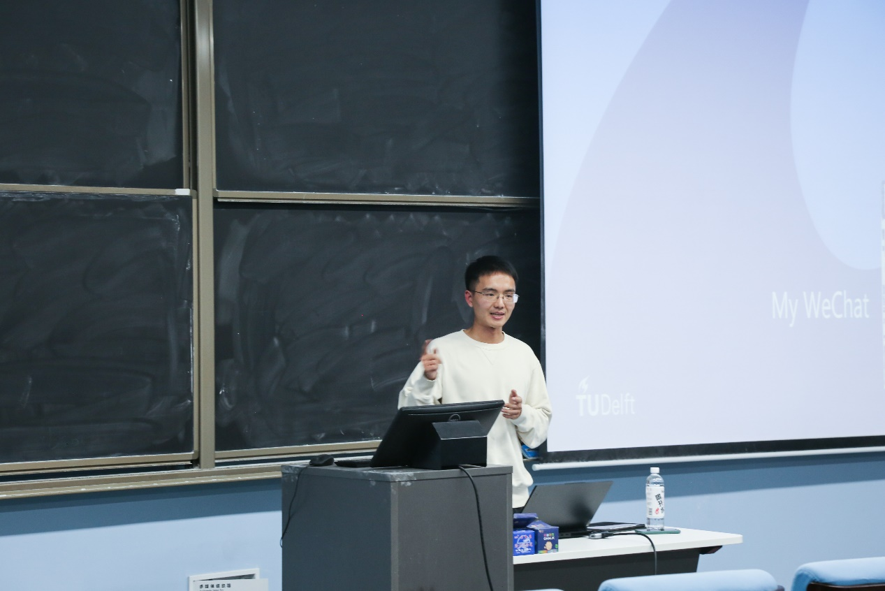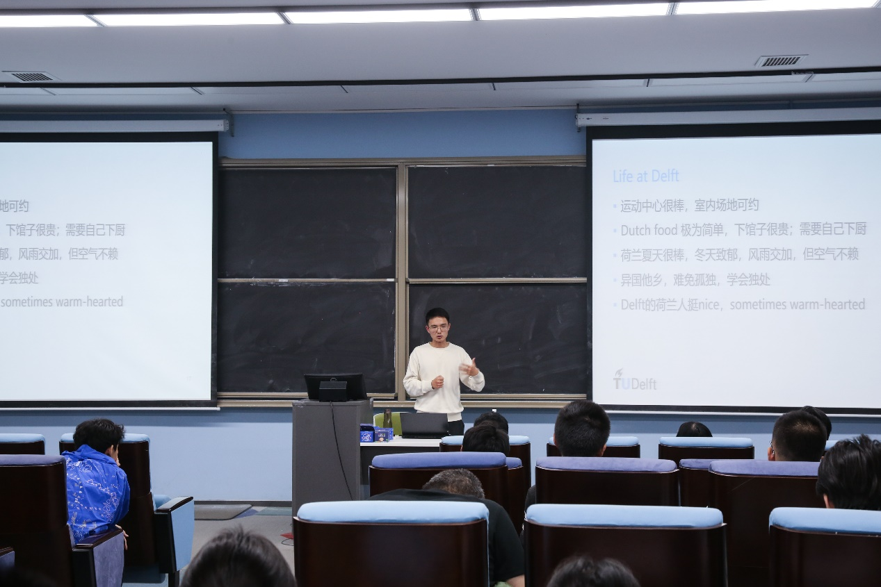 今天很有幸能听到韩绍航学长带来的讲座。学长从自身海外的留学经历中,帮我们提炼精华,为我们当中有意向留学的同学指明道路。学长着重从国外的学习目标、科研氛围、硬件设备等条件讲述了自己的经验。在荷兰留学期间,他曾参与过医学、无人机工程等多个领域的研究,可谓博闻强识。这段独特的经历,让他感到国外的学习氛围更注重“take it slow,take it seriously”,需要认真将每一件事做好,静心研究,不急于求成,同时要主动争取机会,积极展现自我。学长还着重提到“合作”的重要性,不论是日常研究还是毕业设计,都可能需要多人完成,要培养协作精神,勇于创新。