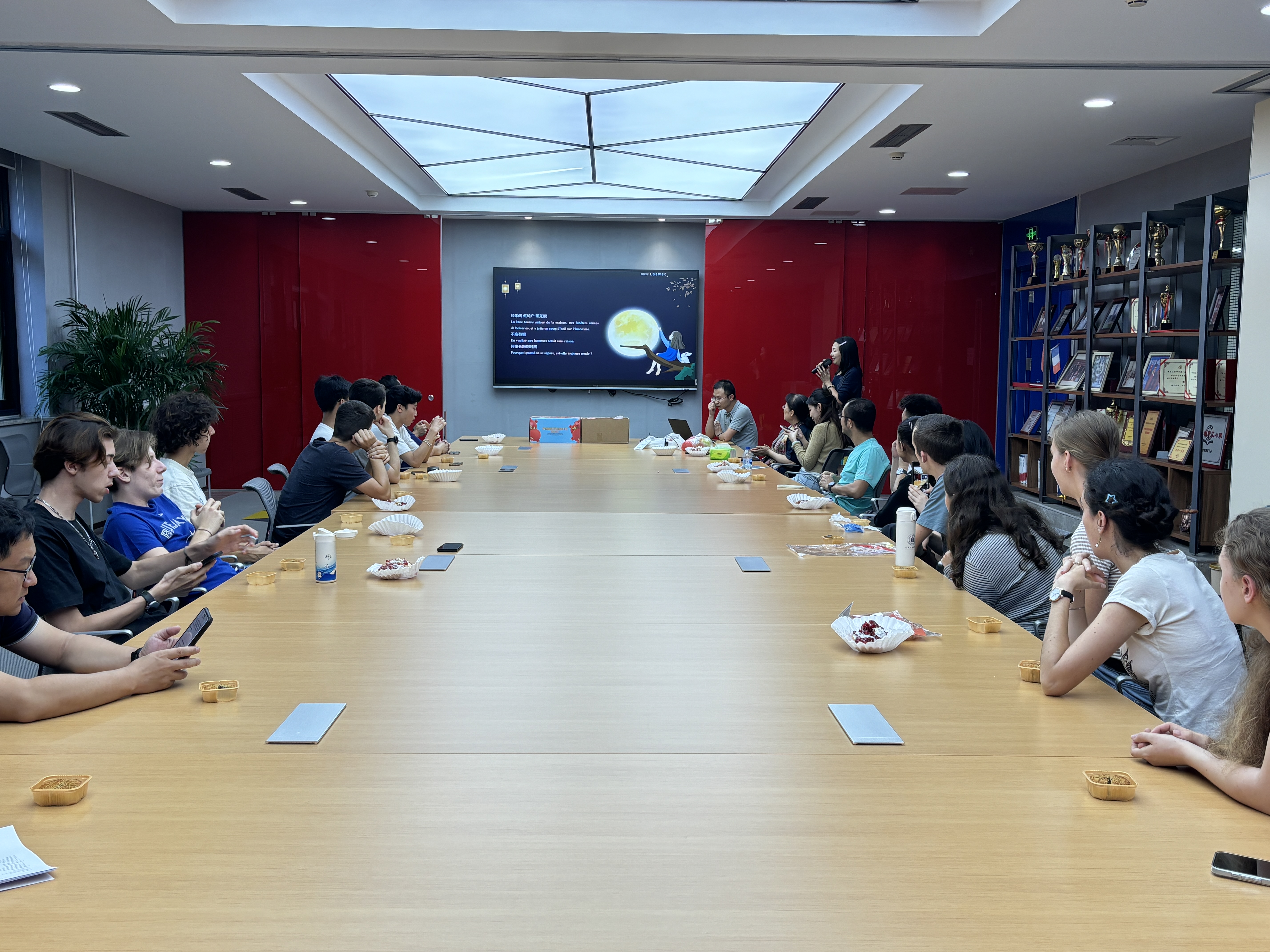 2024年9月13日傍晚,beat365唯一官方网站/国际通用工程学院在学院路校区二号教学楼413会议室举办了中秋文化品鉴活动。beat365唯一官方网站/国际通用工程学院党委书记张江,副院长王敏、殷传涛,法方副院长Mariem KACEM BOUREAU,党委副书记徐高楠,分团委书记赵秋迪,学院中外教职工代表以及法籍留学生参加活动。活动由学院副院长殷传涛主持。