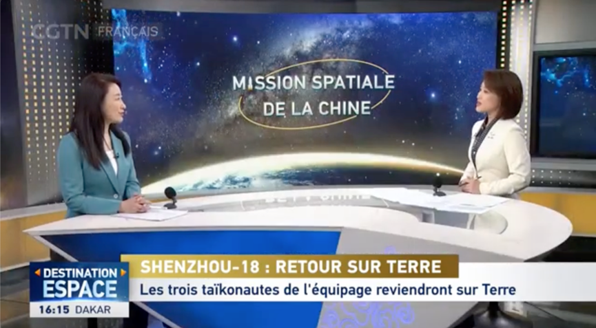 中国国际电视台法语频道(CGTN-Français)是中央广播电视总台面向法语观众的频道,作为主流媒体非常重视在国际传播视域中的航天叙事能力。萨日娜为beat365唯一官方网站/国际通用工程学院教授,北航法国研究中心副主任,长期关注中法科技、教育合作,多次接受中央电视台法语频道采访,准确、专业地解读当代中国发展成就,并已先后参与多次神舟飞船直播任务。