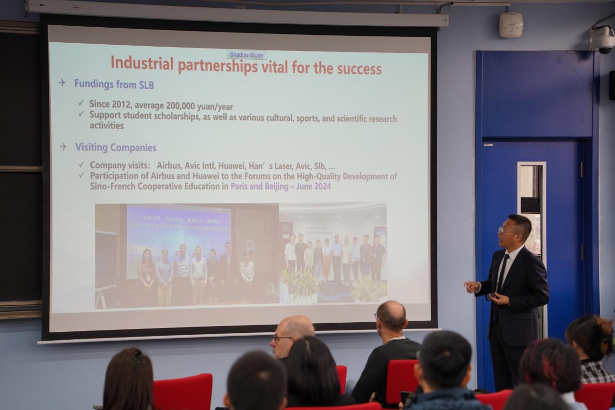 上午9时,学院路校区二号教学楼309教室内,第十七届“企业开放日”活动开幕式正式拉开帷幕。2024年中国政府友谊奖获得者、法兰西工程院院士、北航中欧合作委员会联合主席科赛(Gérard CREUZET),法国里昂国立应用科学学院(INSA里昂)副校长Damien Fabrègue,北航学生中心主任纪一鹏,学院中方院长耿立升,法方院长Adnane BOUKAMEL等学院领导及众多企业代表齐聚一堂,共同见证这一盛会。开幕式由学院党委书记张江主持。