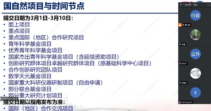 耿立升院长强调了国家自然科学基金对于学院科研工作的重要性,指出国家自然科学基金不仅是对科研工作者个人能力的认可,更是学院科研实力的重要体现。耿院长传达了学校对国家自然科学基金申请的高度重视,尤其是国际合作类项目,并鼓励各位老师利用好学院平台和自身的国际合作资源,积极筹划相关项目的申请,力争在今年的国家自然科学基金申请中取得优异成绩。