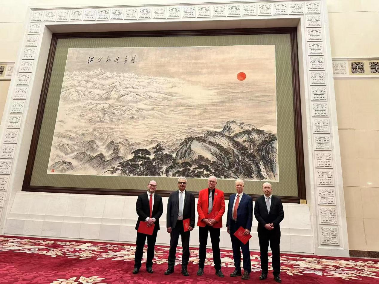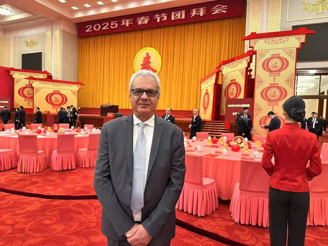 中共中央、国务院1月27日上午在人民大会堂举行2025年春节团拜会。中共中央总书记、国家主席、中央军委主席习近平发表讲话,代表党中央和国务院,向全国各族人民,向香港特别行政区同胞、澳门特别行政区同胞、台湾同胞和海外侨胞拜年。习近平强调,即将过去的甲辰龙年,是我们振奋龙马精神、历经风雨彩虹的一年。一年来,面对复杂严峻形势,我们沉着应变、综合施策,攻坚克难、砥砺奋进,中国式现代化迈出新的坚实步伐。受国家人力资源和社会保障部邀请,beat365官网法方院长Adnane Boukamel教授与其他四位国际专家参加团拜会。