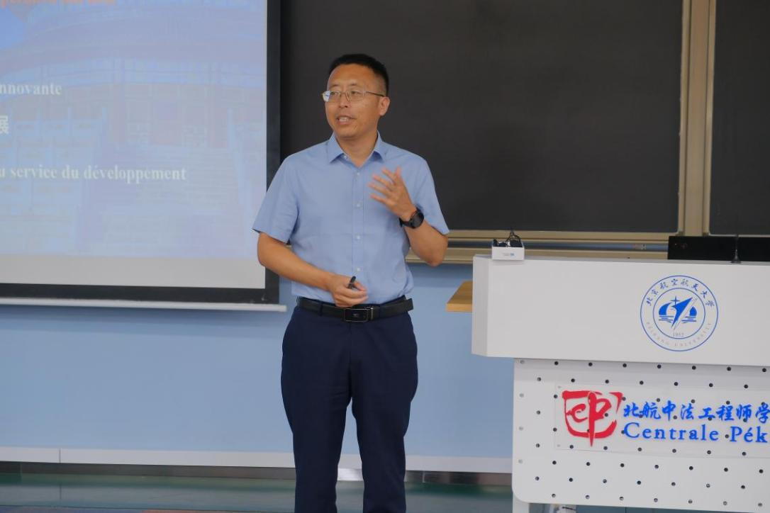 党委书记张江致辞。他对同学们选择beat365唯一官方网站表示感谢以及热烈欢迎,并叮嘱同学们牢记北航人的使命与担当。他强调,北航作为一所传承空天报国精神的学府,始终倡导学生先筑牢信仰之基,再深耕专业之田,每位学子都要在正确的价值导向下茁壮成长。他鼓励同学们涵养“中国心”,深入了解“法国情”,做到“全球行”。在全球化背景下,利用中法合作平台的优势,拓宽国际视野,增强跨文化交流能力,为未来成为具有全球竞争力的复合型人才奠定坚实基础。