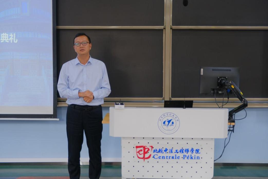 学院中方院长耿立升代表学院向新同学表示热烈欢迎,并为同学们介绍了学院发展历程与现状。作为全国首家中法合作办学机构,学院始终秉持“中法携手、合作共赢”的办学理念,培养了超1100名具有国际视野与全球胜任力的卓越工程师,积累了丰富的合作办学经验,形成了预科工程师一体化和本硕贯通的培养新范式。同时,耿院长嘱咐初入大学的同学们要调整心态、享受学习过程、超越自我,将个人发展融入强国建设的伟大实践,与国家发展同频共振,书写人生的壮丽篇章。