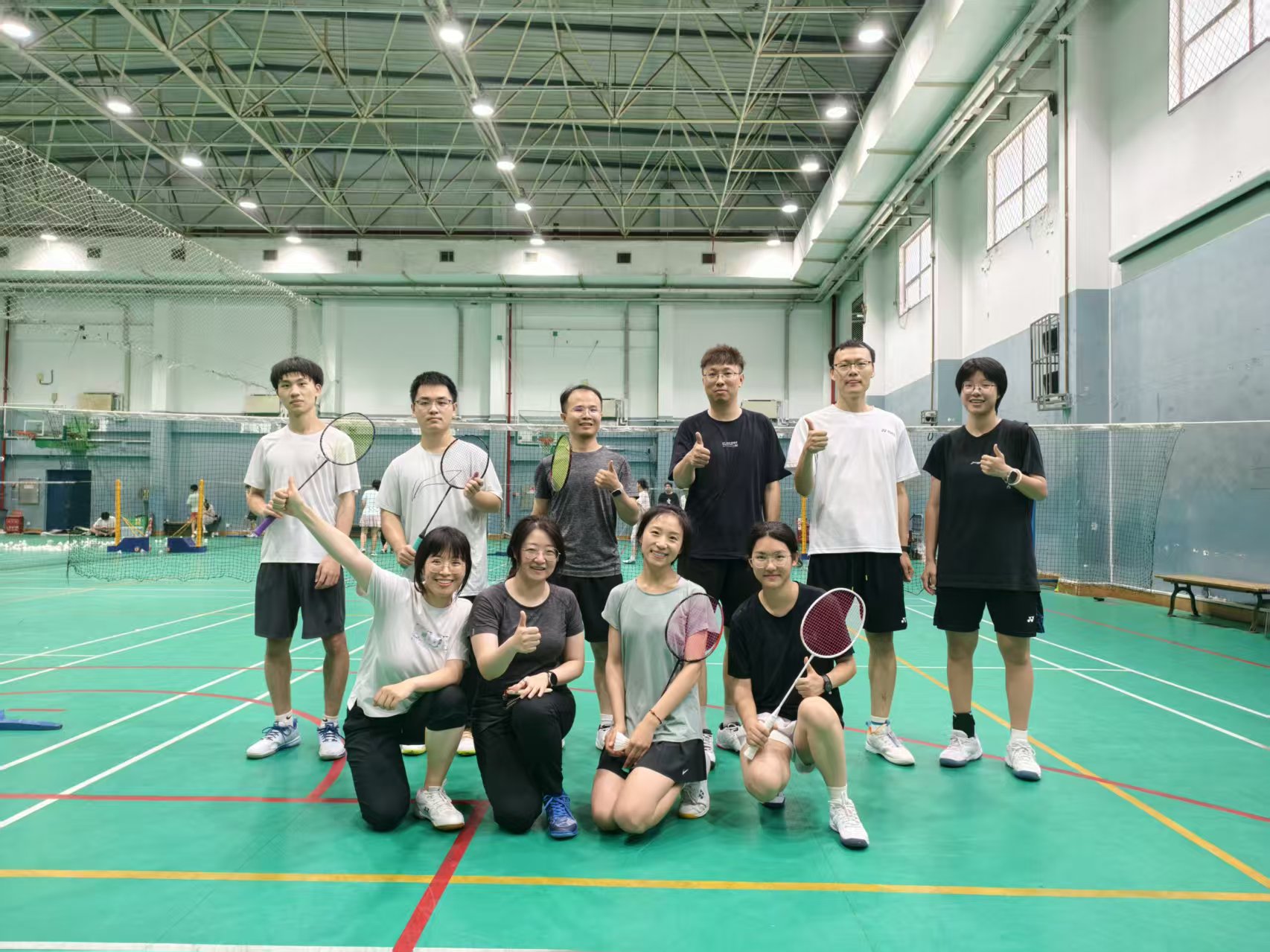 下午两时许,活动的热情从教室延续到了北航体育馆主馆。一场别开生面的“校友杯”羽毛球联谊赛在这里活力上演。校友们换上运动装,手持球拍,在赛场上挥洒汗水,切磋球技。场上既有紧张激烈的扣杀,也有默契十足的配合;场下则是欢声笑语不断,大家交流着运动心得,也分享着各自的人生近况。