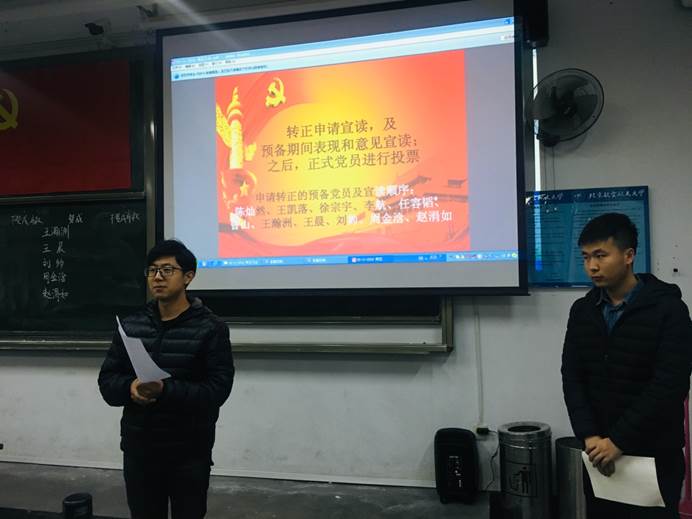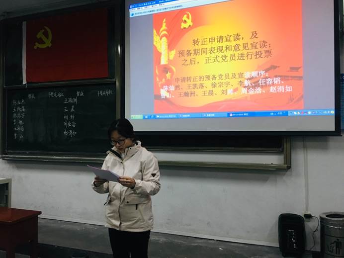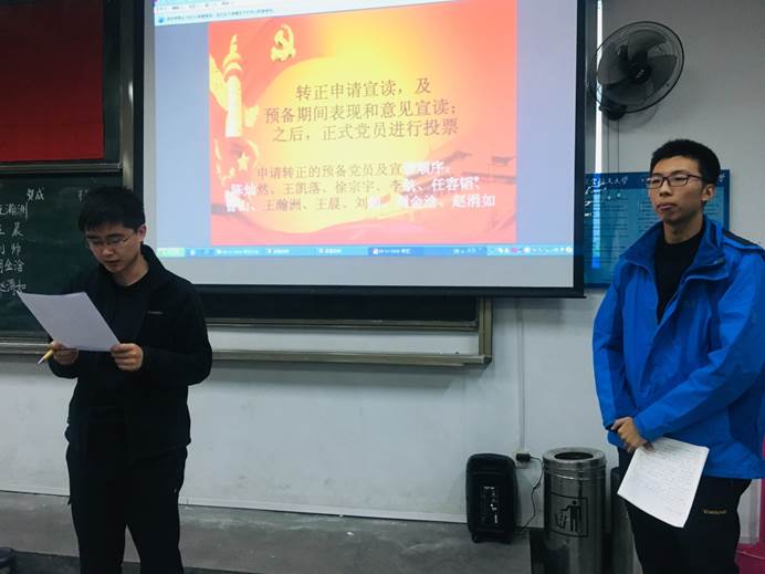最后,党支部正式党员对所有申请人进行不记名投票,由朱健同志和宋琬泠同志现场进行唱票、计票,并宣读表决结果。