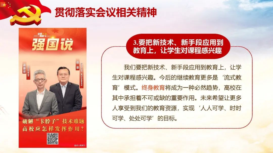 当今社会,国家发展和科技创新正面临全新的挑战,迫切需要一些新兴的科研手段和方法来满足国家发展需求。对此,张荣代表通过厦门大学的成功案例,说明了高校如何在突破关键性技术难题方面发挥作用。作为高校,应根据国家战略和自身定位需要,在学科体系、人才体系、治理体系、保障体系等方面发力,构建一流特色体系;同时依托这些体系不断提高人才培养能力、科技创新能力、服务社会能力、国际合作与交流能力,以此来推动自身发展。蒋昌建代表建议,更多的高校应坚持将服务国家重大战略需求、区域高质量发展需要作为科技创新的主攻方向,加快原创性、引领性、战略性成果产出。