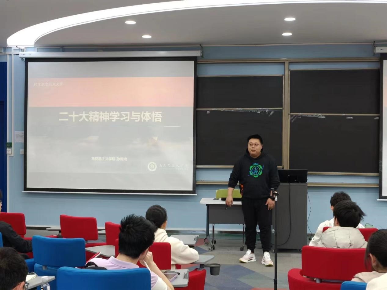 2023年4月8日上午9点30分,2023年春季寰宇党建工作坊第二次课程在二号楼309教室开展。主讲教师孙润南老师以二十大精神学习与体悟为主题,给同学们带来一场精彩的党课,令同学们受益匪浅。通过本次党课的学习,同学们对于二十大报告的内容有了新的感悟,对于中国式现代化也有了更加深刻的理解。