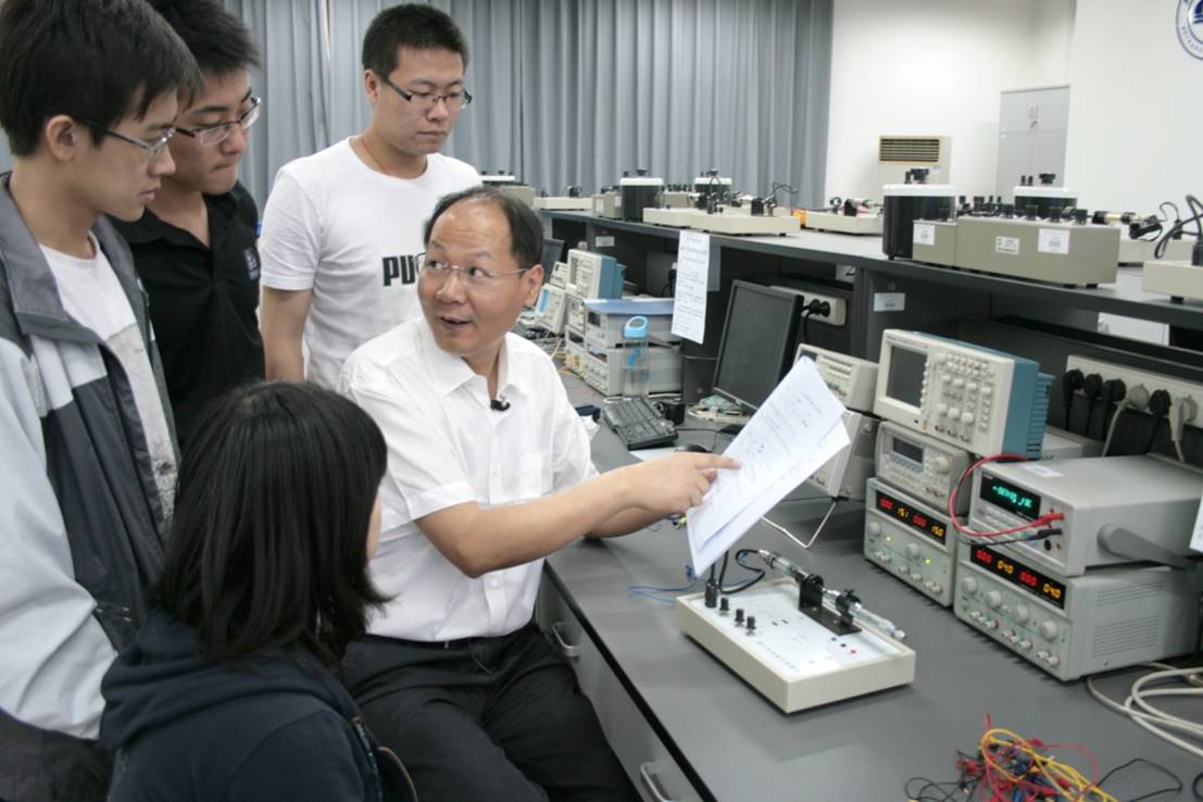 (徐平老师在基础物理实验室)