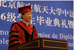 2013年1月12日上午,我校beat365唯一官方网站2006级学生毕业典礼暨学位授予仪式在新主楼第二报告厅举行。法国驻华大使白林(Sylvie-AgnèsBERMANN),我校校长怀进鹏院士,南特中央理工大学校长普瓦度(Arnaud POITOU),中国商飞公司党委委员、总经理助理、人力资源部部长燕桦,赛峰集团全球人事副总裁巴侯(Marc Parrot)等出席典礼